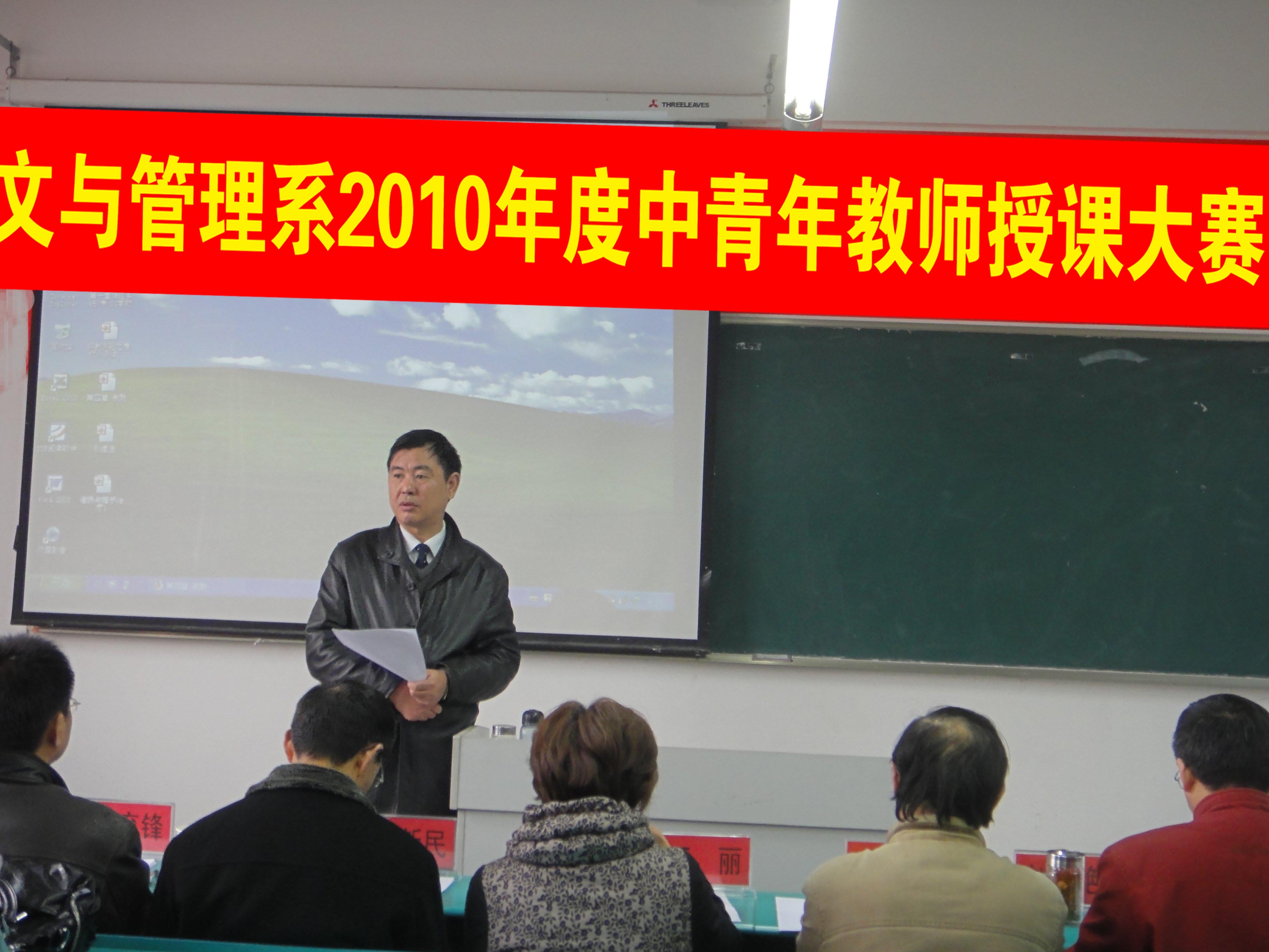 人文与管理系45周岁以下的专兼职教师参加了此次比赛。比赛以集中讲课的方式进行,重点考评教师的风范、知识面、教师的基本素质和能力、授课的方式、方法、技巧等,以 PPT兼板书相结合的方式进行。
