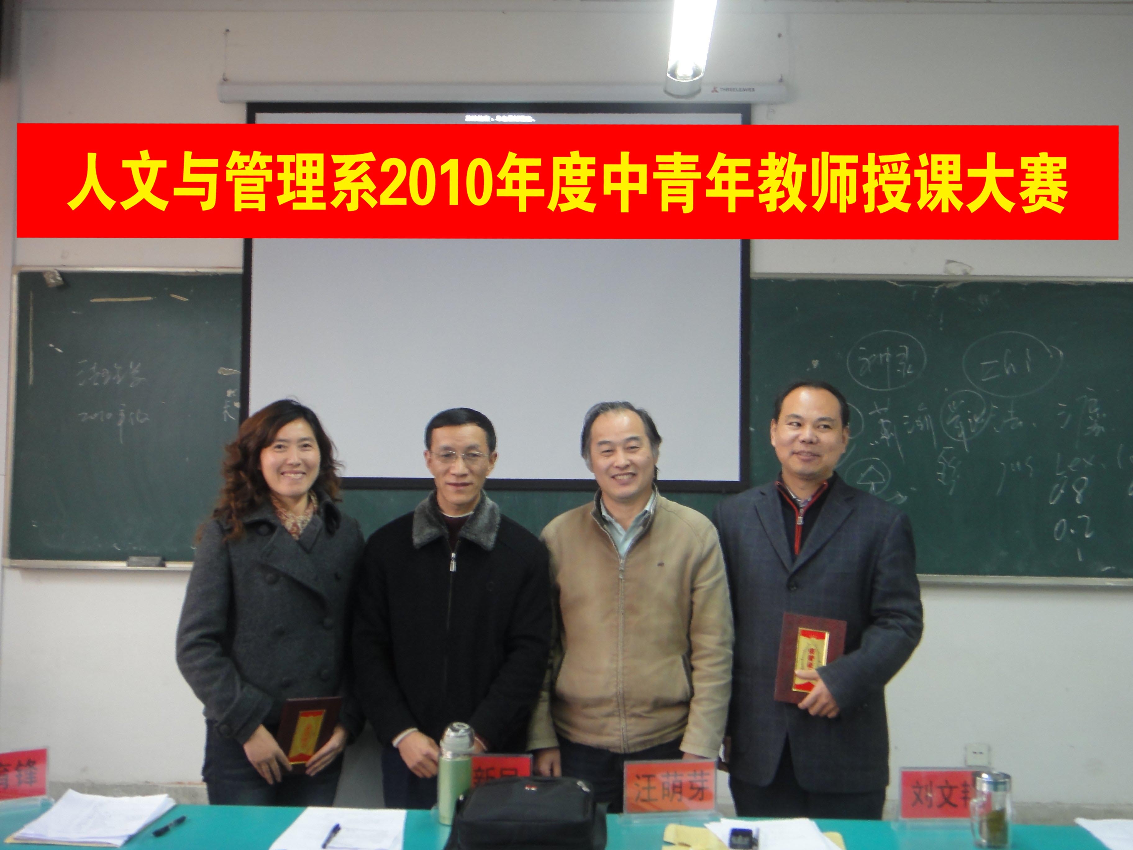 为了进一步加强中青年教师的队伍建设,不断提高中青年教师的业务素质和教学水平,更好地挖掘其教学潜能,促进教师间的相互学习和提高, 12月12日,人文与管理系在西教307教室举行了2010年度中青年教师讲课比赛。系领导阮笑芳书记、胡鸿主任、刘华副书记、王军副主任出席比赛。教务处处长王丽应邀莅临指导,校办主任方国庆副教授、教务处副处长刘文艳副教授、预防教研室文育锋副教授、本系心理教研室主任刘新民教授、生理与神经生物学教研室主任汪萌芽教授等应邀担任评委。比赛的上、下午场分别由胡鸿主任、王军副主任主持。