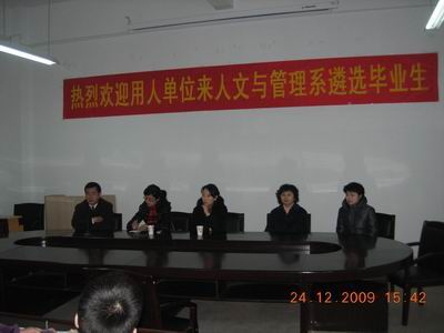 12月24日,中国人民健康保险股份有限公司芜湖中心支公司来我校人文与管理系招聘医疗保险专业的毕业生。招聘会在大我校大学生活动中心二楼多功能厅召开,人文与管理系主任胡鸿、总支书记胡荣华、副书记刘华、学生处副处长阮笑芳和辅导员宋蔼丽老师出席了招聘会。06管理医保专业30多位同学参加了招聘会。