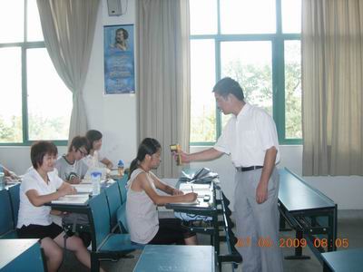9月7日上午第一节课前,人文与管理系主任胡鸿、副主任刘华、学生秘书蒋群和各年级辅导员,对我系学生晨检工作进行了检查。每到一处,胡主任就就上前询问学生的体温情况和外出情况,嘱咐学生每天早上都要定时测量体温,有发热情况立即上报,并亲自进行检测。刘华副主任就预防甲型H1N1流感的注意事项,一一作了强调,并要求学生要注意卫生、不要随意外出,要严格做好晨检工作,并做好记录。最后,系防控领导小组检查了各年级的学生《新葡萄官网amg学生甲型H1N1流感调查表》和《登记表》的记录工作。