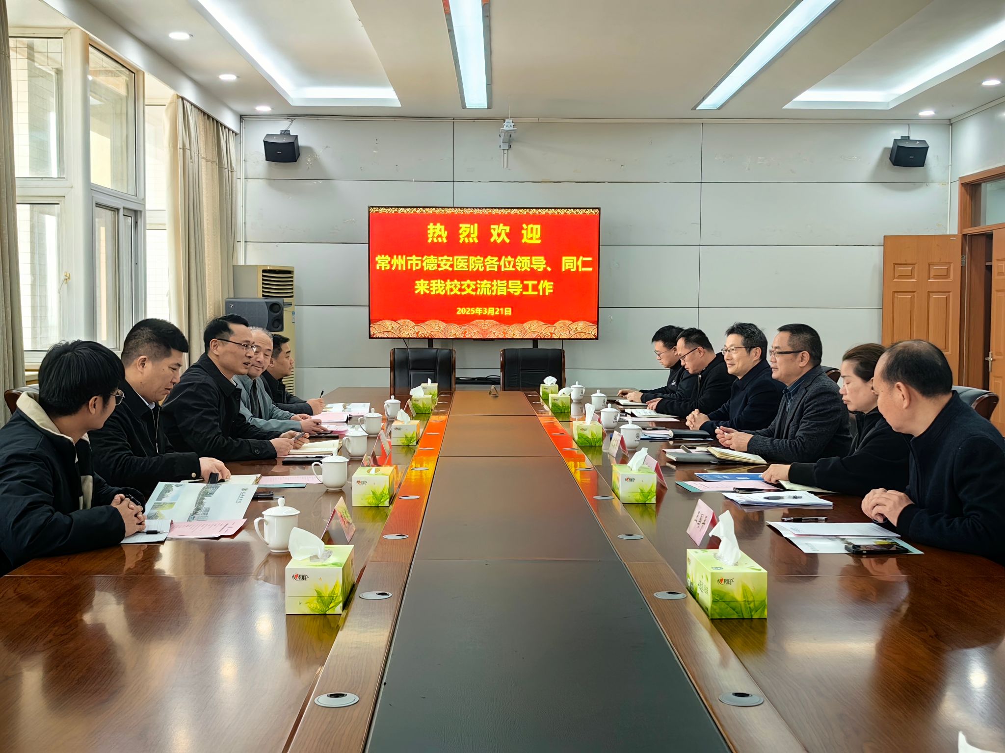 3月21日,常州市德安医院院长黄孝峰一行5人来校调研交流,学校党委常委、副院长文育锋出席调研活动。
