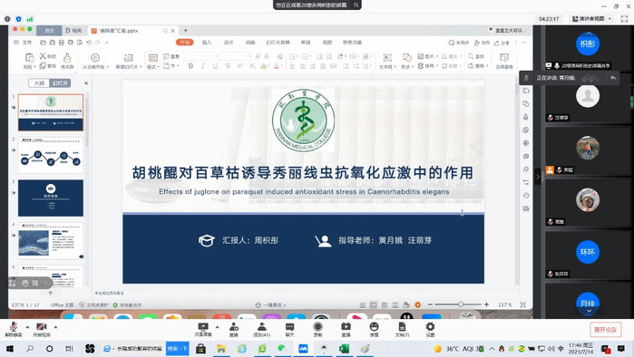 按照相对独立设计(不得做指导教师课题)的原则,2021年“启明星”小组19名成员作为项目负责人进行开题报告,各指导教师以及小组成员线上进行了热烈的讨论,针对课题进一步完善和开展提出了有益建议,为课题的顺利实施奠定了坚实基础,同时也是启明星小组成员的一次头脑风暴式的学术训练。
