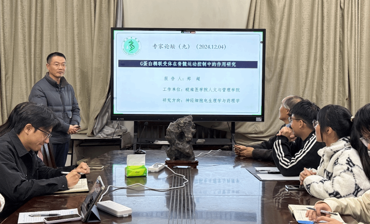 12月4日,由新葡萄官网amg生物学一级学科学位点、省级基础医学拔尖学生培养基地、生理学省级重点学科“启明星”小组联合承办的第九期“专家论坛”在滨江校区北区生理学与神经生物学教研室学术活动室举行,采取线上线下相结合的模式。此次论坛邀请该教研室郑超教授作学术报告,学位点负责人汪萌芽教授主持报告会。学院教师、生物学一级学科硕士研究生、基础医学辅修方向班学员、“启明星”小组成员共50余人参会。