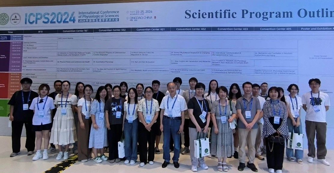 由中国生理学会主办、康复大学协办的“2024年国际生理学学术大会”于8月22 -25日在青岛市召开。我校生理学与神经生物学团队教师8人、研究生8人和“启明星”小组成员12人,在张环环、郑超教授的带领下出席大会。