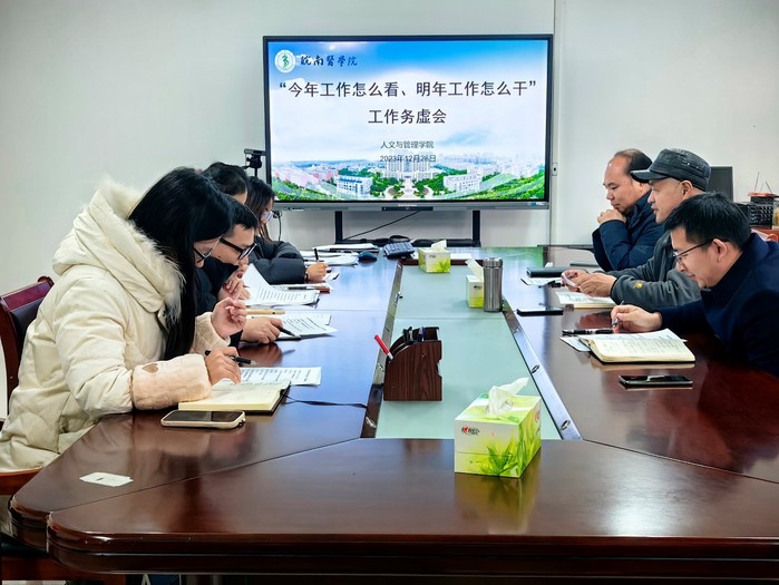 与会人员对照学校2023年工作要点和学院2023年整体工作计划,全面回顾和总结学院今年各项工作完成情况,分析工作成效、凝练工作特色、总结工作经验,进一步查缺补漏、反思工作不足之处。同时,对照学校和学院现下重点工作和发展规划,认真规划2024年工作整体布局,就学院党建工作、学生工作和事业发展等重点问题进行逐一梳理,例如将大力推进党建“双创”工作更上新台阶;加大学科建设投入力度,对于学院学科平台提升和争取国家级项目立项做出整体部署;扎实做好审核评估各项工作,为学校发展添砖加瓦;积极推进2024届毕业生征兵和就业工作,重点聚焦学生就业思想引领、访企拓岗、公务员考试培训、考研面试指导等提出下一步思路规划;进一步加快师资人才队伍建设,真正做到“引得进、留得住、用的好”,并重点对青年教师梯队和辅导员队伍加大培养、锻炼力度,打造一批能力强、业务精、作风硬、素质高的教师队伍。