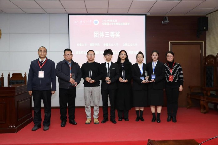 12月10日,由安徽省教育厅主办,安徽省法学会、安徽省法官协会、安徽省检察官协会、安徽省律师协会协办,安徽大学承办的“2023年第五届安徽省大学生模拟法庭比赛”在安徽大学法学院圆满落下帷幕。来自全省21所开设法学专业的高校代表队参加了比赛,我校代表队在本次大赛中再创佳绩,喜获“最佳组织奖”、“团体三等奖”各1项,1名同学获得“优秀辩手二等奖”,1名同学获得“优秀辩手三等奖”,实现了奖项类别和奖项数量上的新突破。