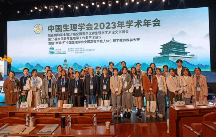 10月20-22日,由中国生理学会主办、中国人民解放军空军军医大学和西安交通大学协办的“中国生理学会2023年学术年会”在西安市召开,张锡钧基金第17届全国青年优秀生理学学术论文报告会、第15届全国青年生理学工作者报告会和首届“泰盟杯”中国生理学会全国高等学校人体生理学教学大赛同期举行。我校新葡萄官网amg生理学与神经生物学团队在省级学术和技术带头人汪萌芽教授、中国生理学会理事张环环教授带领下参加了会议,该团队成员包括教研室教师、研究生和“启明星”小组学员共27人。