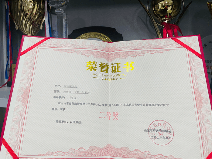 9月22日-24日,由山东省行政管理学会主办的第二届“寻是杯”华东地区大学生公共管理方案设计与决策对抗大赛在齐鲁工业大学政法学院顺利举办。由我校新葡萄官网amg彭乐康、彭湘云、文豪、李林夕、郑峻文组成的风雨从容队在刘海荣、崔春影两位老师的悉心指导下,经过激烈角逐和专家评审,最终在本次大赛中获得良好成绩。