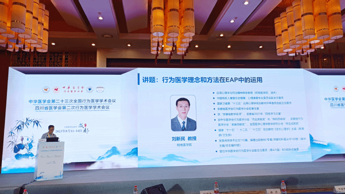 8月11-14日,由中华医学会、中华医学会行为医学分会主办,四川省医学会、四川省医学会行为医学专业委员会、四川大学华西医院承办的中华医学会第二十三次全国行为医学学术会议在成都市召开。来自国内外各高校、医疗机构、科研院所的相关领域专家共600余人参会,我校心理学团队应邀参会。本次大会紧密围绕“行为决定健康,良好生活方式”主题,设立了主题报告和行为决定健康等8个分论坛,系统介绍了国内外行为医学的新进展、新成果,共同讨论了我国行为医学的发展前景。我校刘新民教授应邀作《行为医学理念和方法在EAP中的运用》学术报告,详细介绍了EAP项目的设计、内容和实施情况等,受到与会专家们的广泛好评,他们在会下与刘新民进行了热烈研讨,并积极索要基于EAP项目实施的研究成果《心理健康释疑解惑300问》 (该书入选国家新闻出版署“2023年农家书屋重点推荐出版物”目录)。中华医学会行为医学分会对刘新民在行为医学领域多年来的临床实践成果予以高度评价,表示将根据EAP项目需要积极支持后续服务和建设。