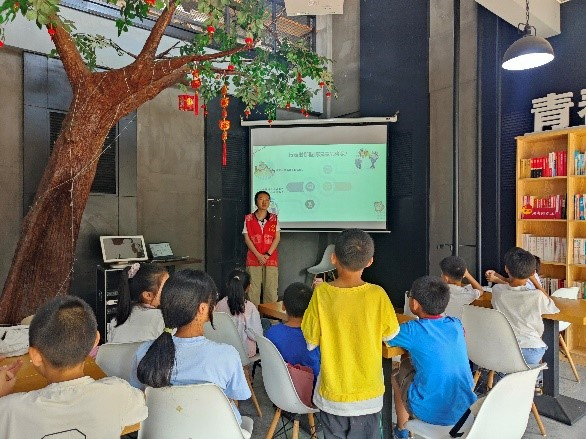 “道路交通安全法”知识小课堂活动,团队成员通过朗诵“安全顺口溜”,用通俗易懂的方式为小朋友普及道路交通安全常识,并用《道路交通安全法》中部分法条列举有那些危险驾驶行为,呼吁小朋友将法律小知识带回家中,监督家长酒后不驾驶,牢记“安全第一”的理念。