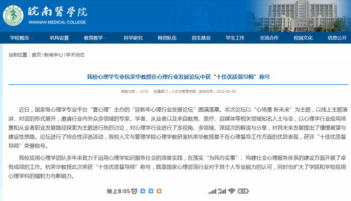 杭荣华教授荣获全国“十佳优质督导师”称号报道