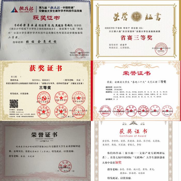 坚持“五育并举”,积极开展青年志愿者、暑期“三下乡”、科技文化艺术节、体育运动会等实践活动。学院“青春法治行”、“心梦”、“筑梦青春”及“幸福葆”四个实践队分别结合专业开展“德智体美劳”实践活动500余次,产生了喜人成效:仅在近两年,我院学生参加“哲寻杯”全国高校公共管理案例大赛获得一等奖,参加全国大学生英语竞赛获得二等奖,“启明星”小组成员获全国首届脑科学与脑技术创新大赛二等奖。同时,参加安徽省第一届“精创教育杯”人力资源数字化管理大赛获得一等奖;参加安徽省第十五届运动会高校部田径比赛获得一等奖(第一名)1项、二等奖3项;此外,参加省级“红心向党”红色信息竞赛、安徽省大学生未来律师辩论赛等其他各类比赛中,我院学子共获省级二等、三等奖36项。相关新闻多次被安徽新闻网、中安在线等省级媒体和“今日芜湖”APP、芜湖新闻网等市级媒体转载报道。