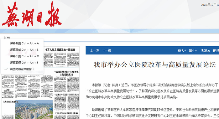 芜湖日报报道我校举办“公立医院改革与高质量发展论坛”