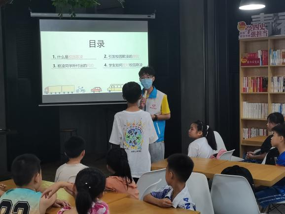 博谘实践队开展防治校园欺凌教育课,团队成员先阐述了“校园欺凌”的概念和表现,再通过鲜活案例引入,让到场的小朋友了解欺凌属于违法行为。最后以互动问答的形式,让他们现场了解身边潜在的暴力威胁,进而指出校园暴力的危害性和违法性,提高青少年自我防护能力,助力保障青少年安全健康成长。