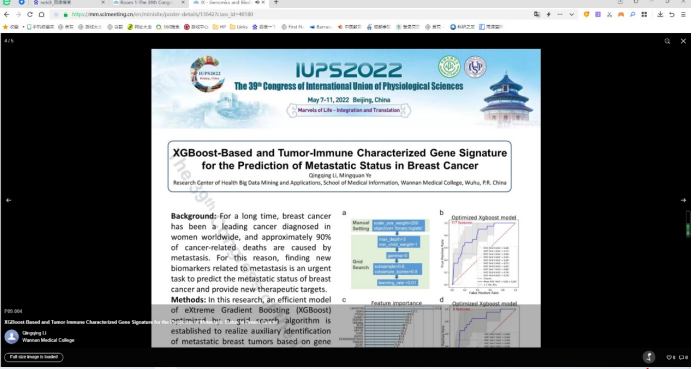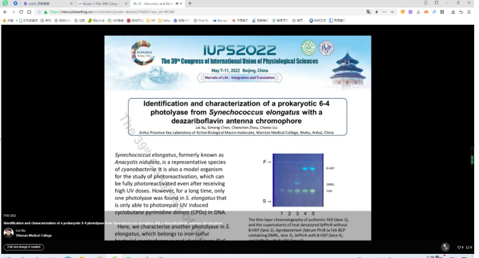 在副校长郑兰荣教授的指导下,我校生理学省级学术与技术带头人、中国生理学会常务理事汪萌芽教授和校生物学一流学科负责人郑超教授精心组织了生理科学团队共77人参加会议,该团队由校生理科学研究所、新葡萄官网amg生理学与神经生物学教研室、“启明星”小组创新型人才培养中心、基础医学院生物化学与分子生物学教研室和医学信息学院医学信息工程教研室等教师、研究生、“启明星”小组成员组成,提交并作交流发言的英文论文摘要19篇,其中研究生18人提交英文摘要8篇,“启明星”小组成员46人提交英文摘要8篇,均通过英文墙报展示的形式参加了线上学术交流,部分墙报还被遴选参加了会议组织的墙报专题讨论,取得了良好的国际交流效果。