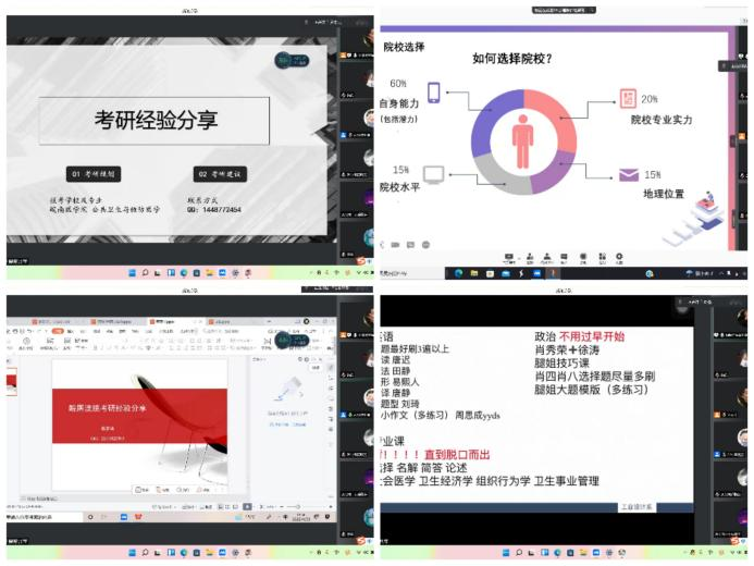 来自2018级不同专业的优秀学子结合自己的考研经历向学弟学妹们分享宝贵经验并为他们细心答疑解惑,“云”上气氛温馨热烈,同学们纷纷表示干货满满,受益匪浅,要向优秀的榜样看齐,明确考研目标,坚定信念,脚踏实地,打牢专业基础,奋楫笃行逐研梦。