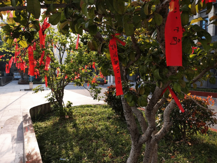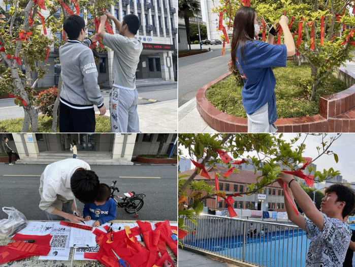 活动一经推出,立即受到了广大同学们的广泛关注和积极响应,纷纷以高涨的热情畅想疫情后的“春暖花开”,在红布条上写下心愿祝福,并将承载美好憧憬的红布条系在树干上,化为千百彩练,随风飘扬,给校园添加了一道亮丽的风景线。