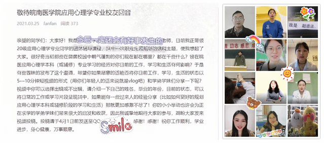 有计划、有目的地开展系列学生就业促进工作,如虽受疫情影响但仍积极联系已经就业或读研(博)的学生以发送网络视频的形式分享就业和求学的成功经验,力求用科学理性的就业观念帮助学生树立坚定的专业思想,规划未来清晰的职业方向。通过依托学院的校企深度合作资源,组织学生参加校园招聘会和推介会,让学生更为全面地了解相关政策、规划求职方案,积极推动学生就业工作稳步开展,努力保障应用心理学毕业生“好就业、就好业”。