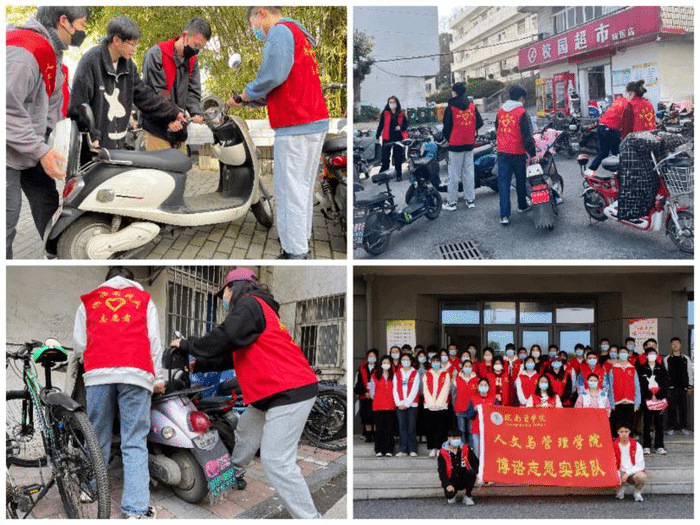雷锋精神,人人可学;奉献爱心,处处可为。为促进校园环境更加整洁,博谘·筑梦青春实践队组织我院广大学子动手清理校园电动车乱停乱放的状况,志愿者忙碌的身影在各个停车地点交互穿梭,让原本凌乱停放的车辆群渐渐变得整齐有序,道路也变得宽敞通畅,有效解决了原先混乱和占用道路的问题。
