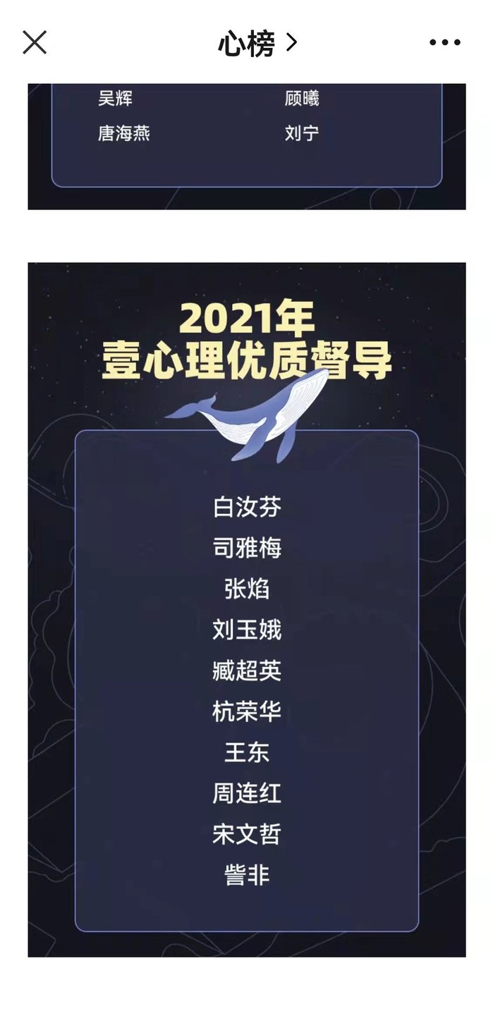 近日,国家级心理学专业平台“壹心理”主办的“迎新年心理行业发展论坛”圆满落幕。本次论坛以“心场景 新未来”为主题,以线上主题演讲、对话的形式展开,邀请行业内外众多领域专家、学者、从业者以及来自教育、医疗、自媒体等相关领域知名人士与会,围绕心理学行业应用场景和从业者职业发展路径探索为主题进行了热烈的讨论,对心理学行业进行了多视角、多领域、深层次的解读与分享,对其未来发展提出了憧憬展望与建设性思路。论坛进行了综合性评选活动,我校新葡萄官网amg心理学教研室杭荣华教授基于在心理督导工作方面的优异表现,获评“十佳优质督导师”荣誉称号。