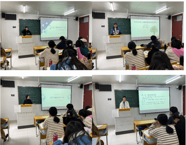 在王欣老师的课前引导和组织下,2019级应用心理学专业的同学分成9个小组,每个小组针对不同类型社区及不同人群设计了心理健康教育方案,通过前期调研、方案设计、方案汇报和方案交流等多个形式,呈现了一场丰富精彩、别开生面的教学课堂。通过交流学习,大家对开展社区工作有了更深入的认识和体会,也对未来从事社区心理健康工作更有信心。