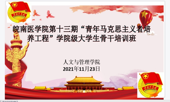 为贯彻落实习近平总书记“七一”重要讲话精神和共青团中央《“青年马克思主义者培养工程”实施纲要》,全面推进我院青年马克思主义者培养工程的科学化、专业化、系统化进程,在广大青年学生中着力培养造就一大批坚定的青年马克思主义者,引导他们成为中国特色社会主义事业的合格建设者和可靠接班人,根据学院党委和校团委的安排,新葡萄官网amg团委于11月23日组织开展第十三期“青年马克思主义者培养工程”学院级大学生骨干培训班活动,院团委书记张露进行第一期授课,各年级学生骨干成员参加。