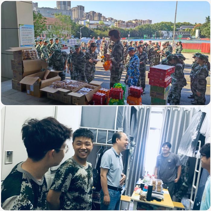 9月21日下午,学院在赭麓校区四合院门口为全体新生和教官发放了月饼和饮料,让同学们感受到了学院大家庭的温暖和关爱之情,窦弘在现场祝福全体教官和新生中秋快乐,鼓励新生继续以高昂的斗志和饱满的热情完成军训任务。随后王国平深入宿舍了解学生在军训、学习和生活的困难和诉求,并进行一一解答,同时嘱托和勉励新生要把握青春时光,学好知识和技能,锻炼好身体,做一个朝气蓬勃,对社会有贡献的时代青年。