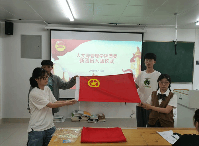 5月7日,新葡萄官网amg举行新发展团员入团仪式。张露为新团员佩戴团徽、颁发团章,4名新团员庄严宣誓,正式加入中国共产主义青年团。张露指出中国共青团是一个庄严而神圣的组织,是党的助手和后备军,每一位团员都要不断地加强政治理论学习,提高自身的政治理论水平,学党史、强信念、跟党走。