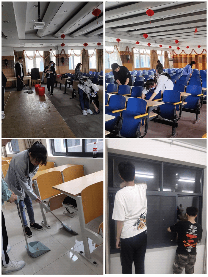 组织开展一次劳动实践集体活动。5月10日中午,新葡萄官网amg学生在团委学生会的带领下集体清扫和整理四号教学楼七楼报告厅。5月10日至12日全体2020级学生对赭麓校区四合院自习室进行大扫除,对本自习室门窗、地面、桌椅、黑板等区域进行清洁和整理。在劳动中,学生们热情高涨,踏实认真,在美化校园环境的同时,体会到了劳动带来的乐趣,也切身体会到校园保洁工人的辛苦,纷纷表示要珍惜他人的劳动成果,为创建文明校园贡献自己的一份力量。