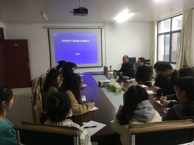 2021年3月15日下午,新葡萄官网amg在赭麓校区四合院2013会议室举办考研复试指导讲座,本次讲座邀请研究生学院院长刘晓平主讲,学院副院长王国平、毕业班辅导员和我院20余名毕业生参加了本次讲座,讲座由王国平教授主持。
