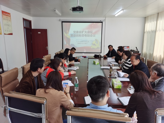 11月18日,新葡萄官网amg召开党委扩大会议暨意识形态专题会议,会议由学院党委书记窦弘主持,意识形态领导小组成员参加会议。