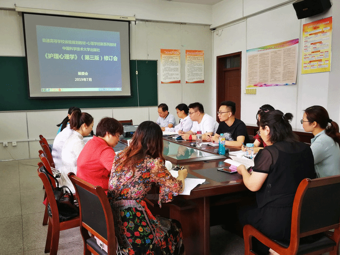 2019年7月12日,心理与健康促进科技创新团队在心理学教研室召开《护理心理学》第三版教材编写修订会议,新葡萄官网amg、安徽中医药高等专科学校、芜湖第四人民医院等单位的编委参加了会议。会议由杭荣华主持。