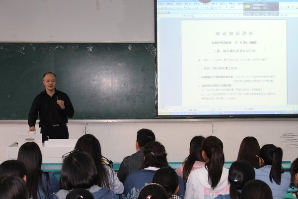 王军老师首先强调了辩论技巧对于法学专业学生的重要性和必要性,认为辩论可以增强对专业理论的理解和把握,改变知识素养,提升运用知识的能力,更好地运用法律辩论的方法去学法、用法;也能够在成功辩论中获得成就感和成功感。同时,辩论其实是一种生活方式,他鼓励同学们多多辩论,一定会对以后的学习工作带来良多益处。