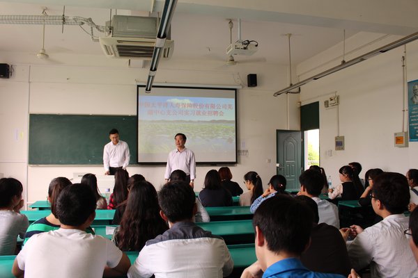 经过洽谈,我校保险学专业已同中国太平洋人寿保险有限公司芜湖市中心支公司达成了实习、就业一体化协议,切实帮助同学们解决就业问题。新葡萄官网amg领导和全院教师对毕业生的实习、就业问题向来十分重视,接下来,学院将进一步对符合条件的单位进行走访、洽谈,力争为同学们提供更多更好的实习、就业机会,提高毕业生就业质量。