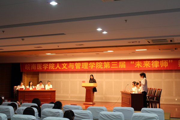 为了培养学生的逻辑思维能力和团队合作意识,提高专业素质,形成良好的学术氛围,激发学生学习兴趣,选拔优秀选手参加安徽省第四届“未来律师”辩论赛,4月19日晚,由新葡萄官网amg团委、学生会主办的第三届“未来律师”辩论赛在图书馆三楼学术报告厅成功举办。比赛邀请了思政部主任王军老师、教务处副处长周书林老师、学院党政班子成员和法学教研室老师担任比赛评委。张柳同学主持了比赛,各年级同学现场观摩。