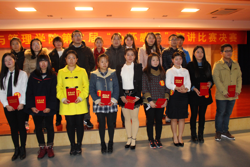 为了进一步培养学生常怀感恩之心,弘扬传统美德,2015年11月26日,由新葡萄官网amg举办第二届的“心怀感恩”演讲比赛总决赛在图书馆三楼报告厅拉开了帷幕,学院领导、老师、各年级同学出席了本次比赛。