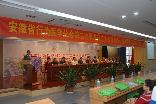 安徽省医学会行为医学分会第二次学术交流大会暨变态心理学国家级继续教育班于2011年10月21日至23日在我校隆重召开。副院长廖圣宝教授、安徽省医学会秘书长王尚柏、中华行为医学分会主委、《中华行为医学与脑科学杂志》总编杨志寅教授、无锡市精神卫生中心程灶火教授、安徽省医学会行为医学分会主委刘新民教授等领导参加本次大会,开幕式由安徽省医学会行为医学分会副主委、蚌埠医学院第一附属医院党委书记张玉山主持。150余名国内专家和与会代表欢聚一堂,共商我省行为医学发展大计并广泛进行学术交流。第三世界院士、原中科院心理所所长、中国心理学会理事长张侃教授莅临本次会议进行指导。