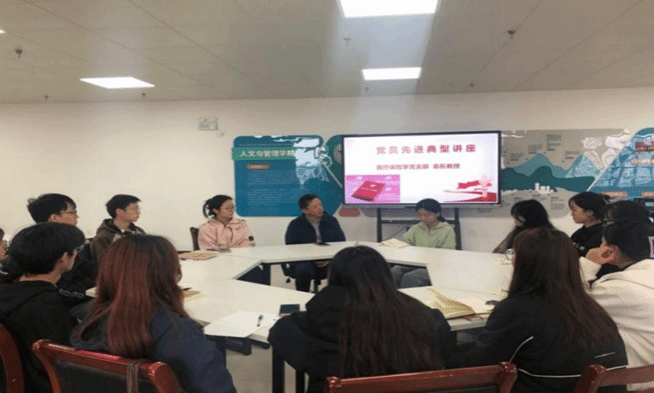 医疗保险学党支部俞彤书记为同学们做了有关优秀党员先进典型的讲座,指出作为一名入党积极分子和当代大学生,应该“德智体美劳”全面发展,尤其要以学习为重,并向学生们讲述了终身学习的重要性,与他们探讨了考研及考公的问题,热情回复了大家的提问。