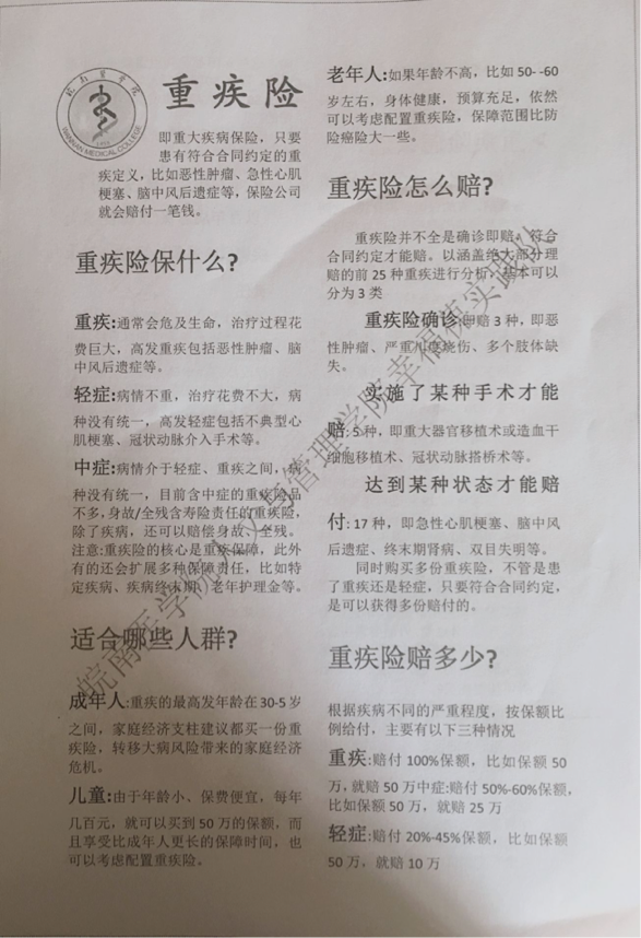 在志愿服务活动中,为了让居民们更好的了解重疾险,学生志愿者们向商户、居民以及其他高校学生分发了重疾险宣传单并向他们详细介绍了重疾险的相关知识。在宣传过程中,学生志愿者们运用自己所学的专业知识为商户、居民和学生提供了较为专业的咨询服务。