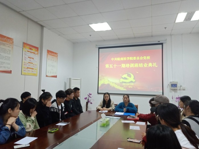 2019年11月8日晚,中共新葡萄官网amg委员会党校第五十一期积极分子培训班结业典礼在新葡萄官网amg会议室成功举办。本次结业典礼由第五十一期党校班主任成铭以及学生第一党支部书记訾梦婷主持,17、18级入党积极分子参加。