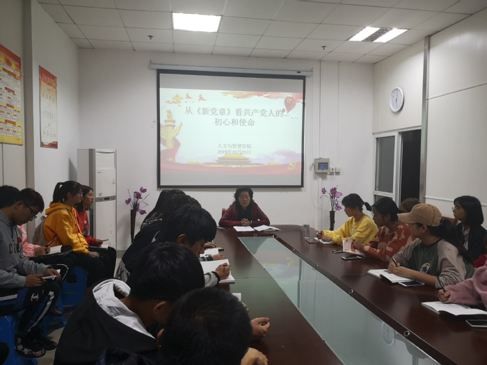 新葡萄官网amg党委书记窦弘以“从《新党章》看共产党人的初心和使命”为专题,以“新党章学习”为教学核心,为入党积极分子授课。她在课上着重强调:各位同学要牢记自己积极要求加入党员队伍的初心,端正入党动机,始终保持着高度自觉,在学习和生活中保持着批评与自我批评的态度。在课上,窦弘书记以事实举例,帮助积极分子理解,并勇于承担起党员的责任与使命。