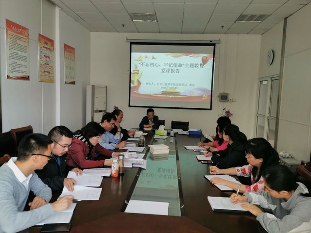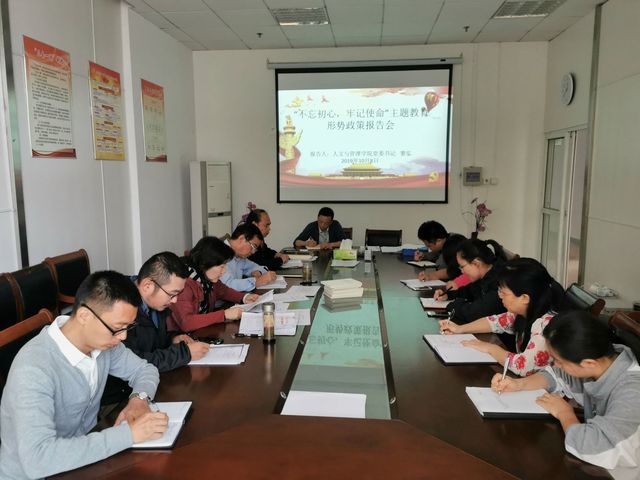 2019年10月8日中午,新葡萄官网amg在学院一楼会议室组织开展“不忘初心、牢记使命”主题教育形势政策报告会和党课教育,学院党委书记窦弘主持会议,学院党委委员和全体党支部书记参加会议。