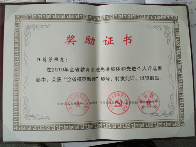 三、支部积极开展学习优秀,学习身边的先进模范活动。通过党课学习宣传全国优秀共产党员张富清,王继才,焦裕禄,廖俊波,龚全珍,黄大年,黄文秀,安徽省优秀共产党员李夏同志的先进事迹。支部的汪萌芽教授喜获“2019年安徽省模范教师”荣誉,汪教授也在支部做了“不忘师者初心,争做师德楷模”的专题报告,介绍了省级模范教师的先进事迹。支部所在教研室全体教师均完成了“以德立身,以德育人,争做“四有”好老师专题网络培训,通过这些学习活动,支部党员教师进一步明确了争做有理想信念、有道德情操、有扎实学识、有仁爱之心的好老师的职业目标。