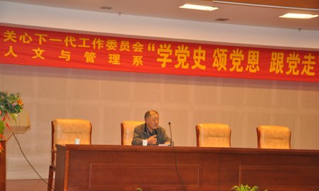 | 为庆祝中国共产党90华诞,人文与管理系党总支于4月14日下午在校三楼报告厅举行了“学党史,颂党恩,跟党走”主题报告会。我校关工委副主任席品山作了题为“我是怎样跟党走的”专题报告。新葡萄官网amg关工委常务副主任黄金余、副主任曹时珍、关工委委员王祥林、党建联络员余海燕莅临了本次报告会。系党总支书记阮笑芳、主任胡鸿、副书记刘华、学生工作秘书杨颖实、团委书记吴映辉、部分辅导员及300多名学生参加了报告会。会议由人文与管理系主任胡鸿主持。 席品山老师用自己扛枪、流血、负伤、立功、获奖、抗美援朝、一生三幸等亲身的革命经历,采用历史与逻辑相结合的方法,再现了党的波澜壮阔的历史,展现了党的辉煌的历程。报告主题鲜明,内涵丰富,深入浅出,语重心长。进一步激发了大家学党史知党情,跟党走的热情,坚定了大家走社会主义特色道路的决心。 最后阮笑芳书记要求在座的各位师生,进一步认真学习党史党情,重温党的光荣传统和优良作风,用一颗感恩的心,坚定跟党走的理想信念,勤奋学习,增长才干,用自己的聪明才智,投入到建设有中国特色社会主义事业之中。把开展党史学习教育同创先争优活动结合起来,推进学习型党组织建设结合起来,确保学习教育活动取得实效。 (杨颖实/文、摄 阮笑芳、张卉/审) |