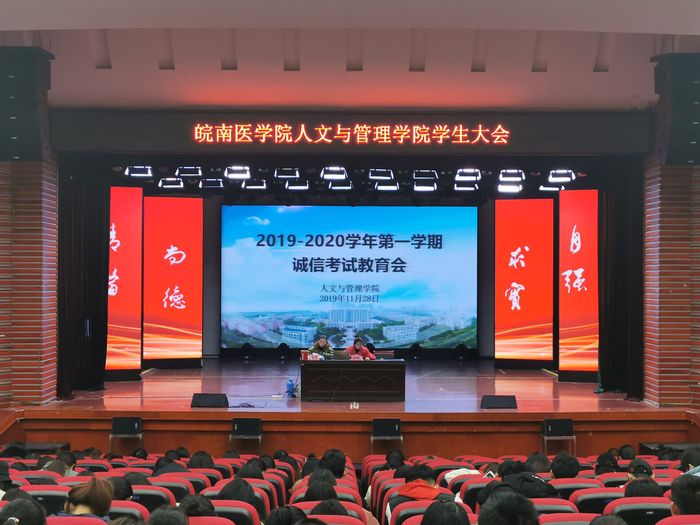 期末考试将近,为进一步加强考风考纪建设,强化学生的诚信精神和自律意识,营造诚实守信、公平公正的考试环境,2019年11月28日中午,新葡萄官网amg面向全院学生举办了诚信考试教育大会,2019级辅导员成铭和学院全体在校学生参加会议。