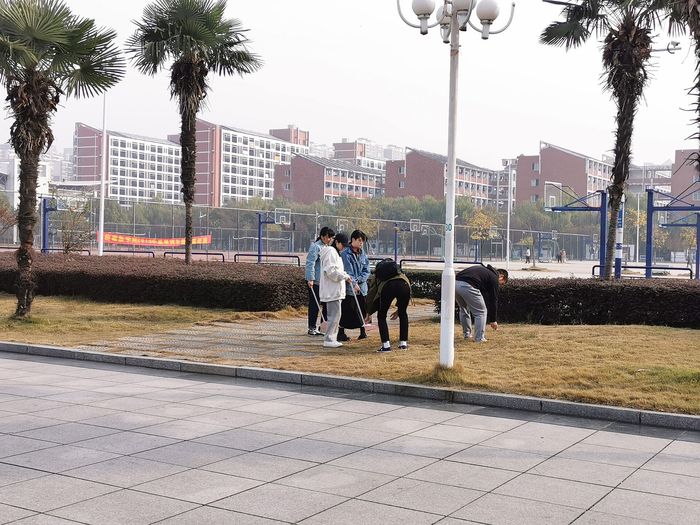 11月24日上午,2019级同学在班长的带领下,热情地投入到了棕榈大道以及田径场周边草坪的清扫工作。秋日的落叶为清扫工作增添了不少难度,但不减同学们劳动的热情。经过他们的辛勤劳动,棕榈大道及周边草坪的面貌焕然一新。