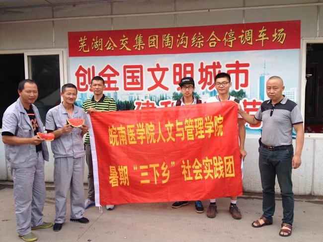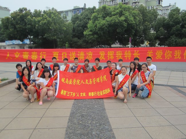为积极响应校团委暑期“三下乡”号召,加强大学生的实践能力,增强学生的专业内涵,丰富同学们的暑期生活,锻炼同学们的交流、沟通能力,更好的服务群众,服务社会,新葡萄官网amg“人文风、青春行”暑期“三下乡”社会实践团队在学院团委书记吴映辉带领下,于2014年6月26至29日开展了“人文风、青春行”暑期“三下乡”系列实践活动。 一、走进福利院,为儿童献爱心 6月26日,“人文风、青春行”暑期“三下乡”社会实践团队来到芜湖市儿童福利院,传授相关安全知识,并给小朋友们送上可口的西瓜以及小礼品。队员们积极参与,都想尽自己所能鼓励和帮助福利院的小朋友们,抚慰孩子们的心灵,气氛十分温馨、融洽。