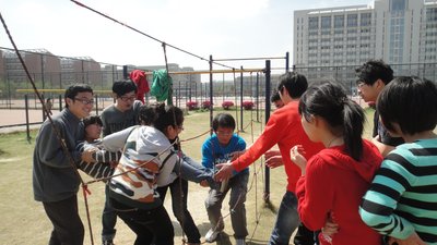 为加强学生干部之间团队协作与解决问题的能力,人文与管理系2009级公共事业管理专业学生于4月14日上午9点半在校北门操场开展了素质拓展活动。