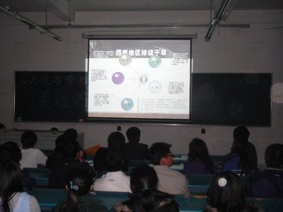 同学们首先观看了由学生会特别制作的关于西南旱灾旱情的PPT,经现场解说,对西南旱情有了更加深刻的了解。PPT放映结束之后,全体同学们纷纷拿出手机按照提示通过手机短信捐助的方式向西南灾区进行了募捐。