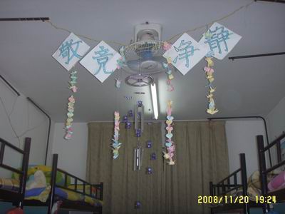 搞好寝室氛围是新生入学所面临的第一次尝试与挑战。因此,我系近期开展的寝室设计大赛旨在丰富学生课余生活的同时也为和谐校园注一抹人文气息。在今晚对我系新生的寝室检查中,寝室的布置各有千秋,装扮温馨新颖,主题鲜明,同学们通过此项活动展示了积极向上的精神面貌。吴老师对同学们的精心布置予以充分表扬并鼓励同学们再接再励,在保持原有状态的基础上努力做到更好,以迎接校团委的检查。